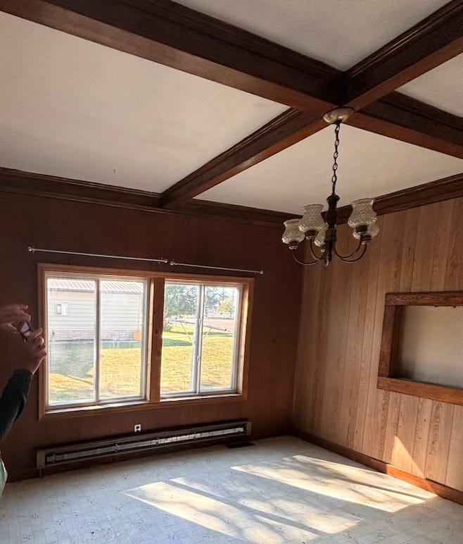 A week ago, my parents and I walked through my mother’s childhood home in Doland, South Dakota. The house has seen better days, but it’s still standing, which means that it can still be filled by story and memory. I saw an empty space where a phone once hung in the dining room, the phone that my dad called my mom up for her first date. I learned where my late Uncle Ken kept his baseball card collection and where my Aunt Kay and Sally kept their dolls and which window my mom opened so that the whole town could hear the bleats of her valve trombone. I saw the clothesline in the yard and the heavy cellar door to the basement. I traced my mom’s steps to her dad’s long-gone service station on Main Street and listened to her say “oh my goodness!” each time she walked into a new room.