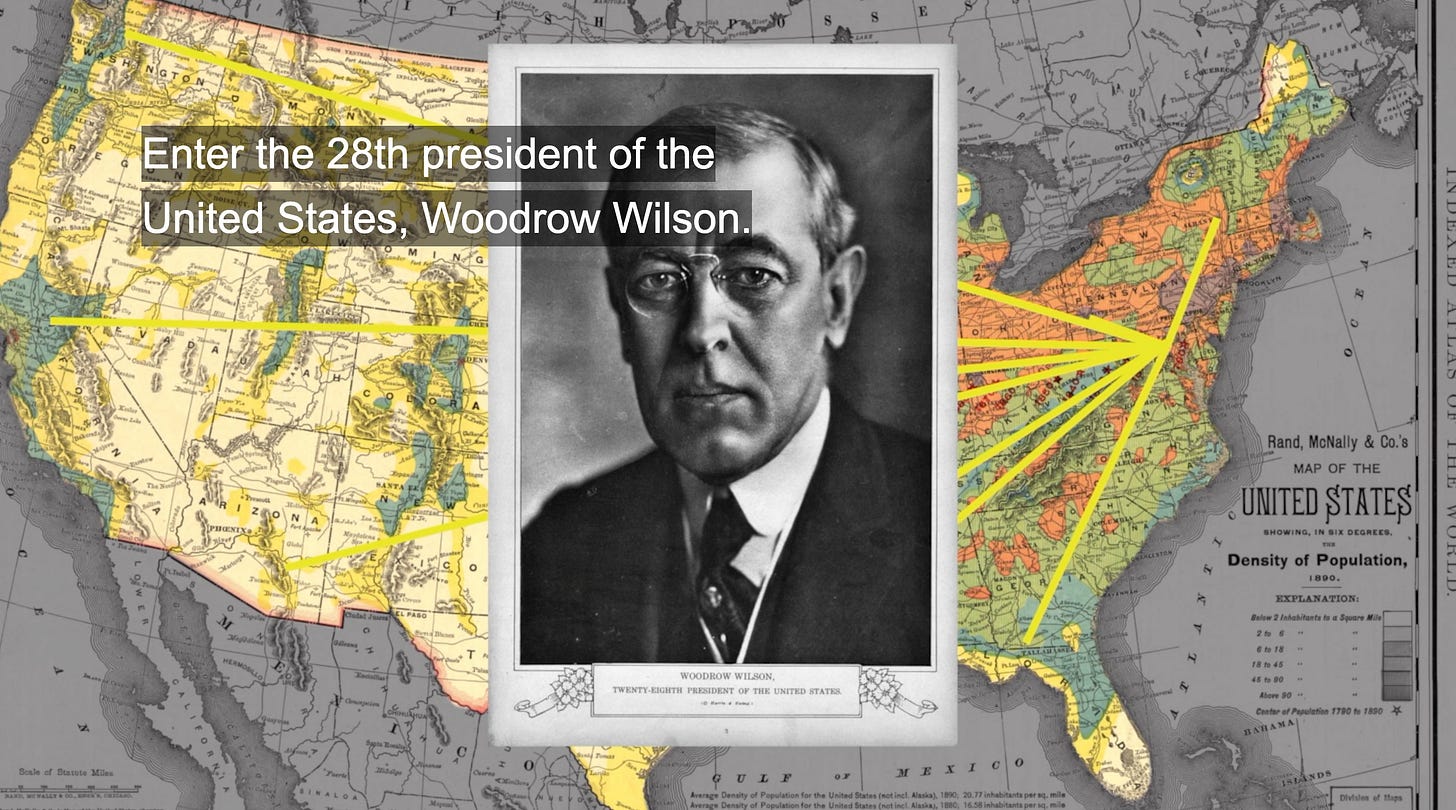 Still not satisfied with these efforts to kill God, the progressives replaced the rational, classical canon with a new field of study— social science— which was religion-denying, human-worshiping and morally relativistic. While this started as a fringe movement at elite colleges, it eventually spread nationwide thanks to one of MisEducation’s most unexpected “far-Left” villains… Woodrow Wilson. Below you can see the yellow lines that indicate precisely how Wilson deployed “social studies” across the continent.