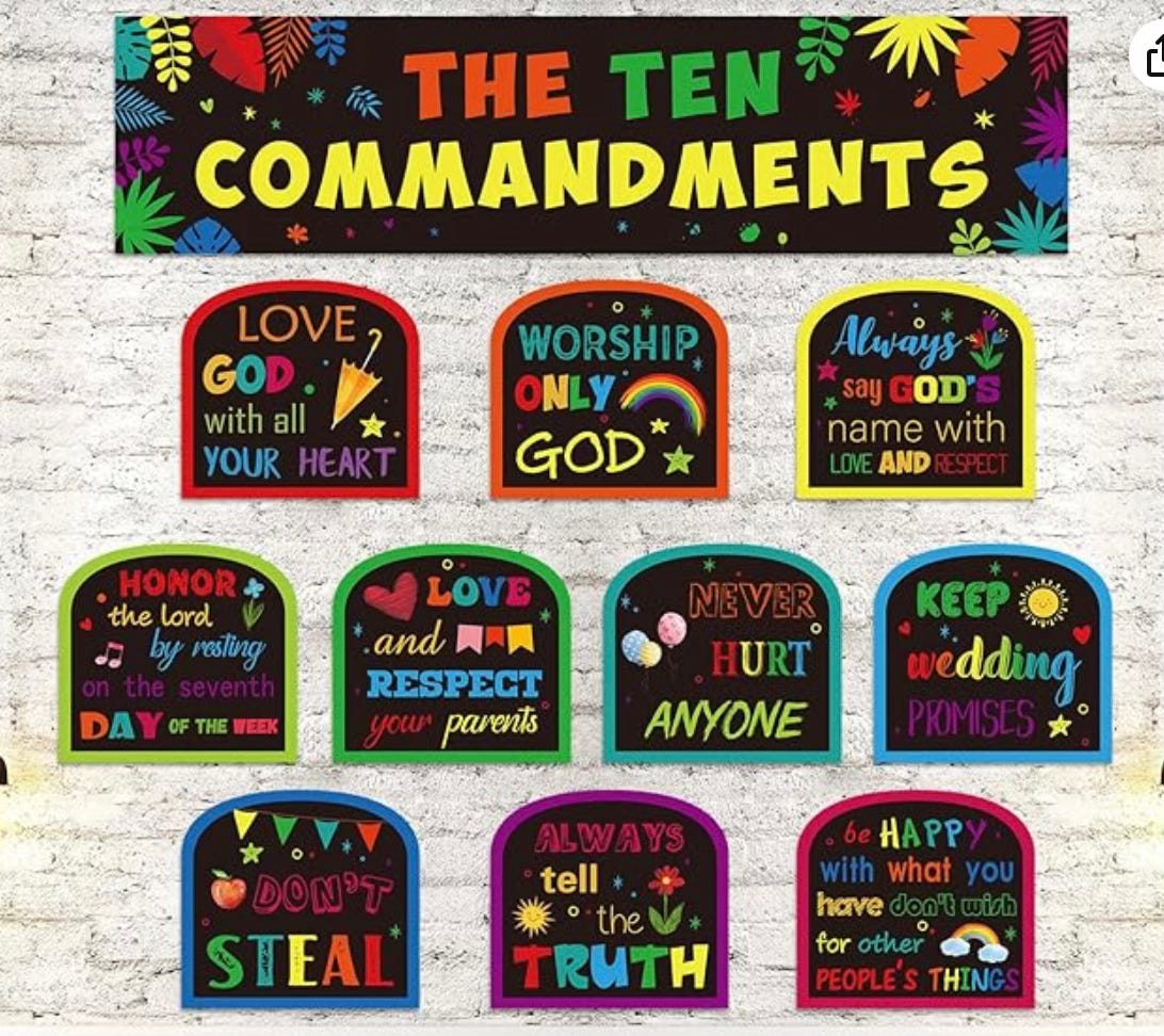 Did you hear the breaking news? Louisiana’s governor just signed a law decreeing that the Ten Commandments must be displayed in every public school classroom. Every classroom in the state! Required by law! All Ten Commandments! I know, right? So many commandments, so little wall space. Bad news for Maria’s poster about her extended family. No room for all your uncles, Maria. You should have thought of that before you chose the big construction paper.