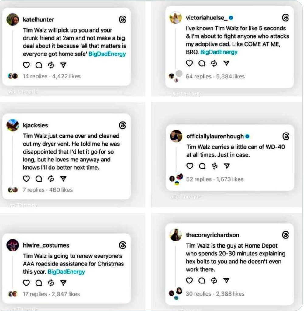 Watching all the memes and tweets about Tim Walz has been really funny, but you bring up a great point, Garrett, about the connectivity of dads.