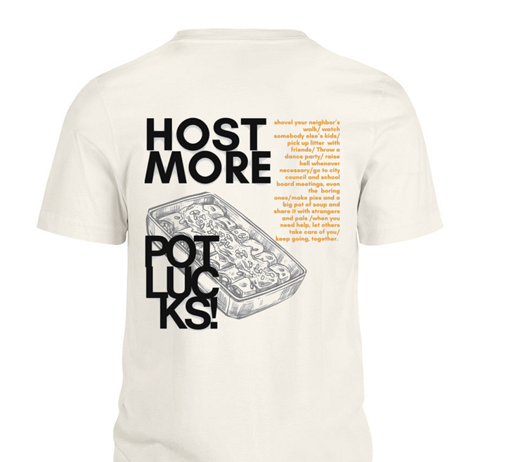 After you do so, email me ( garrett at barnraisersproject.org) with a “merch please” request, noting if you chose a new or upgraded subscription for yourself or a gift subscription for a pal. I’ll then send you a form to request a hat, tote, poster, or two different shirt designs, with an option to either send to yourself or your friend/relative [note that the newest potlucks shirt may not arrive in time for Christmas/Hanukkah, but the others will].