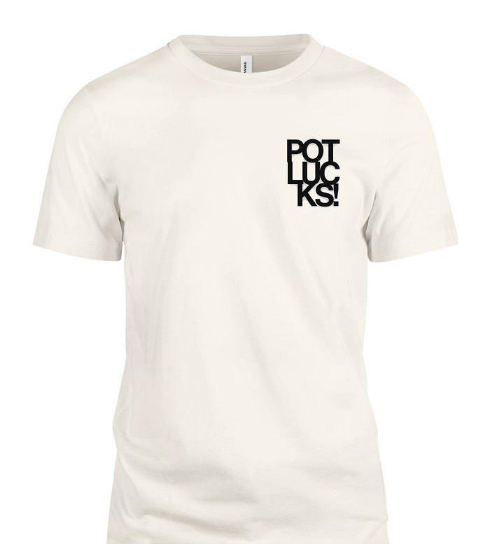 I’ve got some neat merch, both old and new (do you like that potlucks design up above? it’s on a shirt now, see below AND UPDATED THIS WEEK: ALSO A POSTER!). I’m happy to send something, either to you or a loved one as a gift.